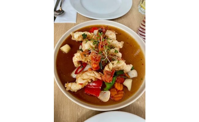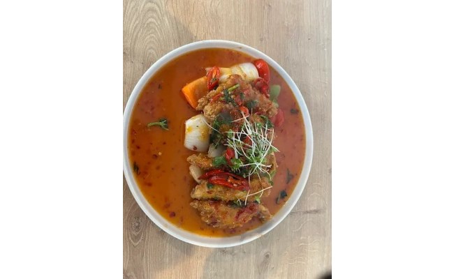🐔Chicken in batter stir-fried with vegetables in sweet and sour sauce.